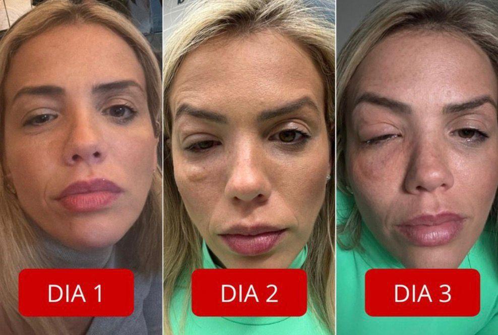 A analista contou que recebeu alta médica após ficar cinco dias internada. De acordo com ela, o olho demorou mais de um mês para desinchar, sendo que a textura ainda não voltou ao normal.